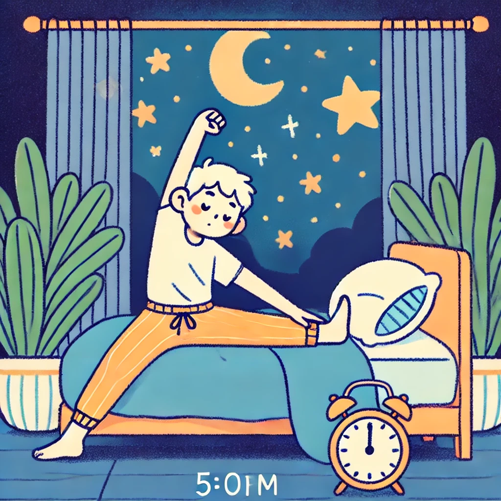 - 적절한 시간 운동: 늦은 시간에 운동하면 오히려 몸이 각성되어 잠들기 어려울 수 있습니다. 오후나 이른 저녁을 추천합니다. 운동을 좋아하는 사람이라도 자기 전에 지나치게 격렬한 운동을 피하는 것이 바람직합니다.